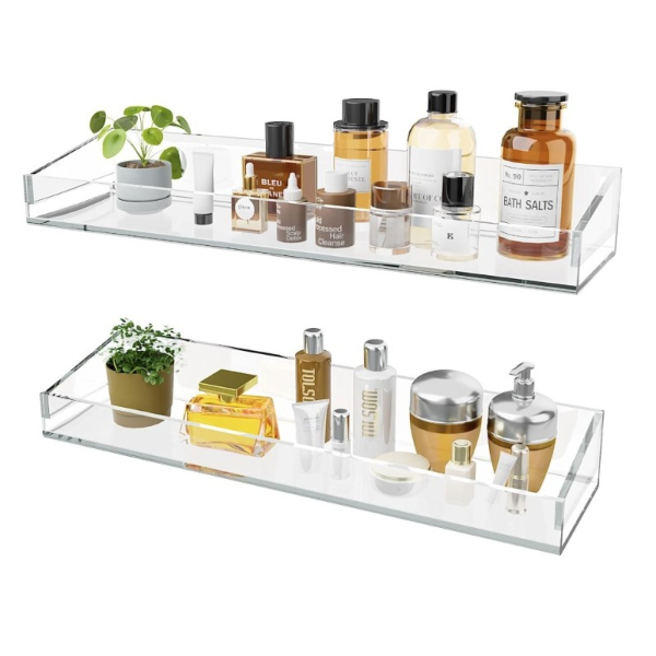 2’li Şık ve Minimalist Tasarımlı Şeffaf Duvar Rafı